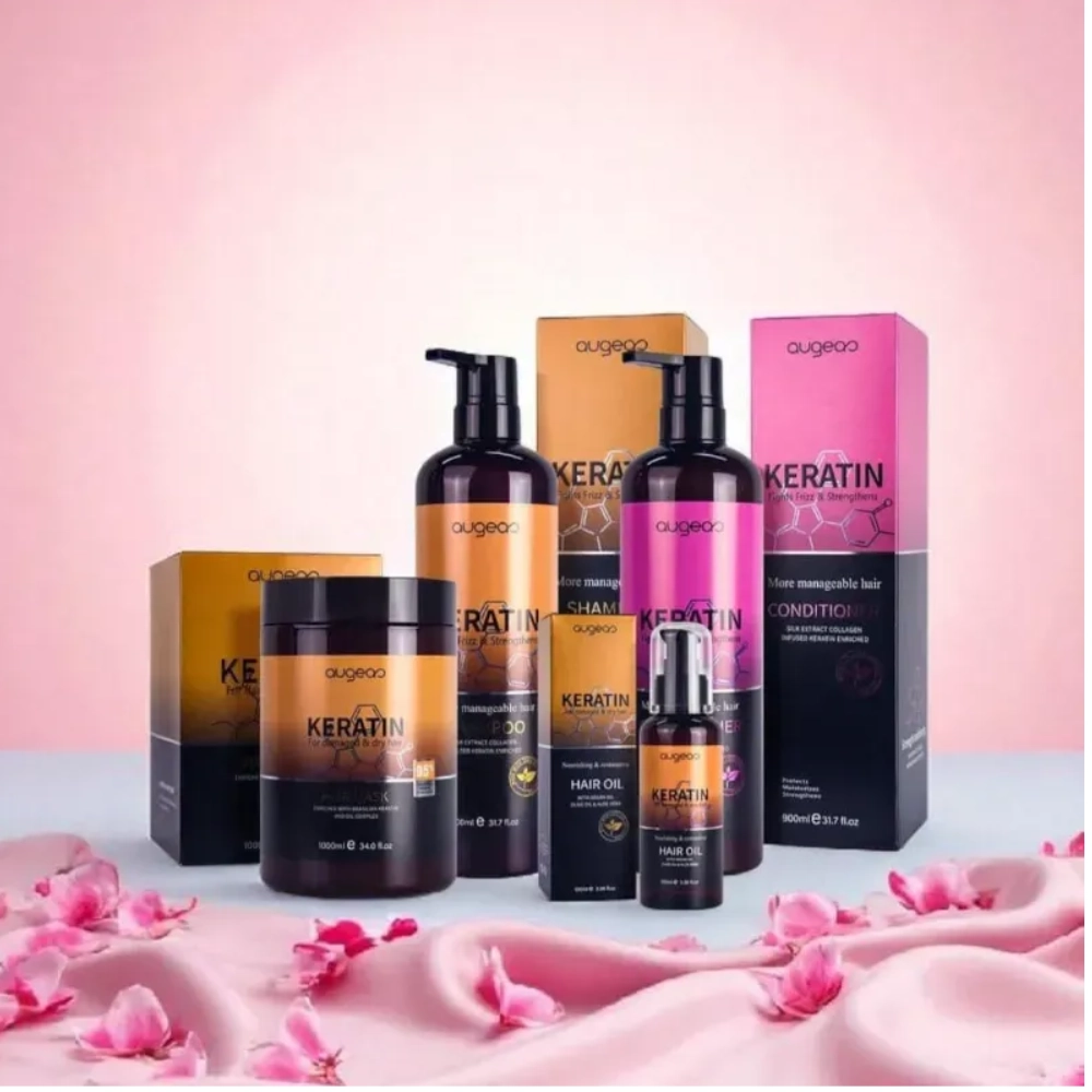 El Kit de Tratamiento Augea está diseñado como una solución capilar integral que va más allá de la limpieza básica, enfocándose en la reparación profunda y el control duradero del cabello dañado, encrespado o sometido a procesos químicos y de calor. Conocido por sus fórmulas enriquecidas con poderosos activos como la Queratina Hidrolizada y el Aceite de Argán, este sistema de cuatro o más pasos trabaja para reconstruir la fibra capilar, sellar la humedad y proporcionar un acabado liso, suave y excepcionalmente brillante. Es el aliado perfecto para mantener los resultados de tratamientos profesionales o para rescatar un cabello debilitado y sin vida.