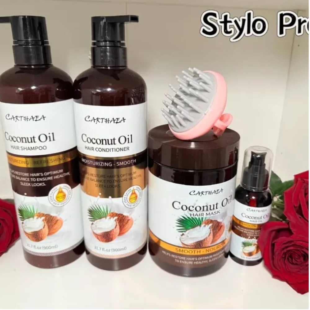 Este kit de tratamiento capilar con base en el Aceite de Coco, una fuente rica en vitaminas, minerales y ácidos grasos, está diseñado como un sistema completo para restaurar la hidratación, suavidad y el brillo natural del cabello. El aceite de coco es conocido por su bajo peso molecular, lo que le permite penetrar profundamente en la fibra capilar, ofreciendo una nutrición desde el interior, a diferencia de otros aceites que solo cubren la superficie. Este ritual es ideal para cabellos secos, dañados, rizados o aquellos que luchan constantemente contra el frizz y la falta de vitalidad.