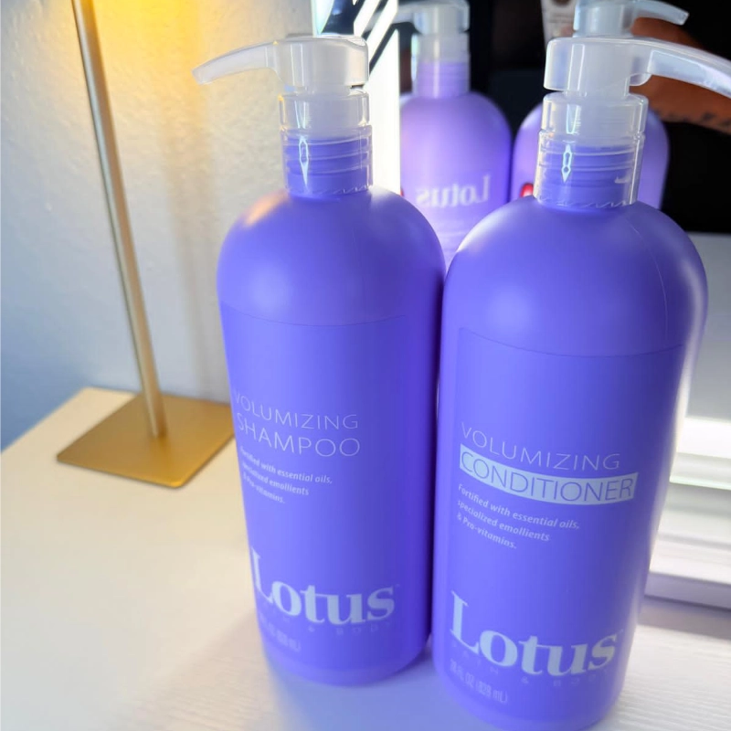 Revitaliza el cabello fino y sin vida con el espectacular Dúo Voluminizador de Champú y Acondicionador de Lotus & Body. Presentado en un llamativo envase púrpura con prácticos dispensadores, este set está diseñado para inyectar cuerpo, textura y densidad a cada hebra.